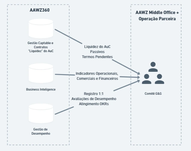 Já sabe como você pode trabalhar melhor seus pilares e sua estratégia para que todo esse arcabouço converse? Estamos agora em fase de dar um sprint para bater as metas de 2025 e já finalizar o mapa para 2026. Podemos atuar desde o alinhamento dos sócios via imersão com fundadores AAWZ até o desdobramento da estratégia e implementação dos ritos de gestão do seu negócio. Fale conosco para entender mais sobre como tecnologia + processos + pessoas podem aumentar sua eficiência operacional e, consequentemente, o seu valuation/lucros.